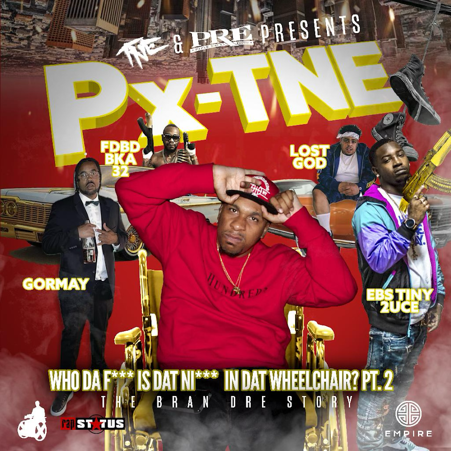 Get ready to turn up and feel the heat with the highly anticipated release of “Who Da F**k is Dat Nigga in Dat Wheelchair? Pt.2 – The Bran Dre Story.” PX-TNE and the relentless underground movement from the West, T.N.E., join forces with the iconic Southern powerhouse P.R.E. (Paper Route Empire) from Memphis to be exact—founded by the Late Great Young Dolph.