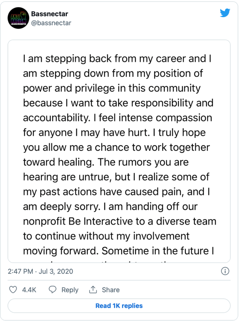 Since the rise of the cancel culture era, we’ve seen performers like Jimmy Fallon, Morgan Wallen, and Louis CK overcome allegations of racism and sexual misconduct to continue with their careers. Film industry experts believe Johnny Depp will be fielding multiple job offers after his victory in a high-profile defamation lawsuit against his ex-wife, Amber Heard, who made abuse claims that were refuted by dozens of witnesses in the televised trial. For some Bassnectar community members, they say nothing that has happened in the past two years would keep them from attending a show if Ashton decided to return to the stage.